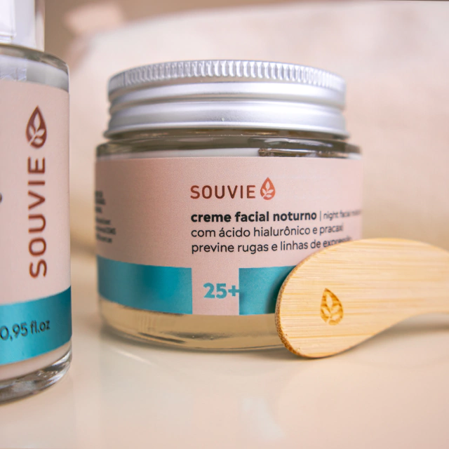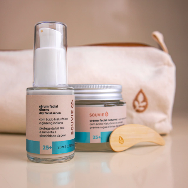 Thinking of a skin care ritual, the 25/45 Night Moisturizing Cream has a denser texture and is richer in butter and vegetable oils. Another great feature of this product is the presence of Pracaxi oil, which stimulates the natural production of hyaluronic acid in the skin, in addition to enriching collagen fibers.